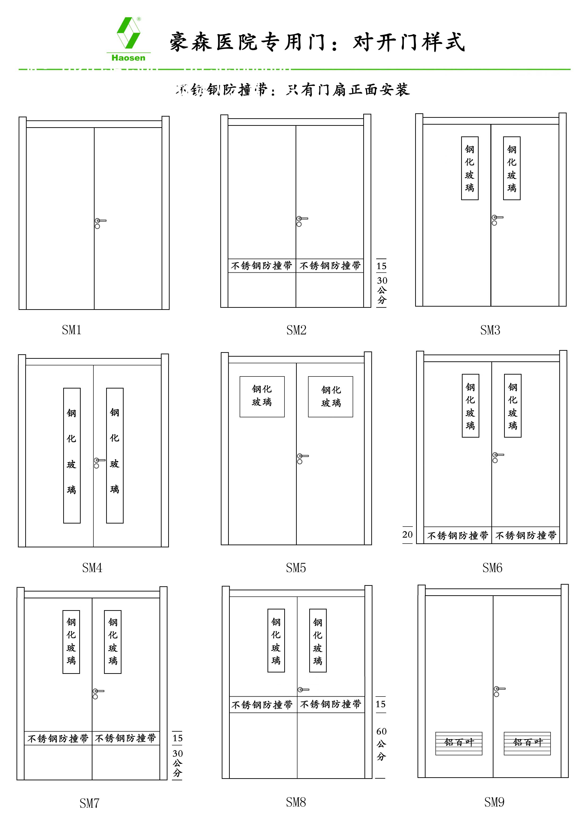 結構:門板雙面為豪森抗菌板,內襯蜂窩穴巢網格高密度板或其它環保不燃材料。